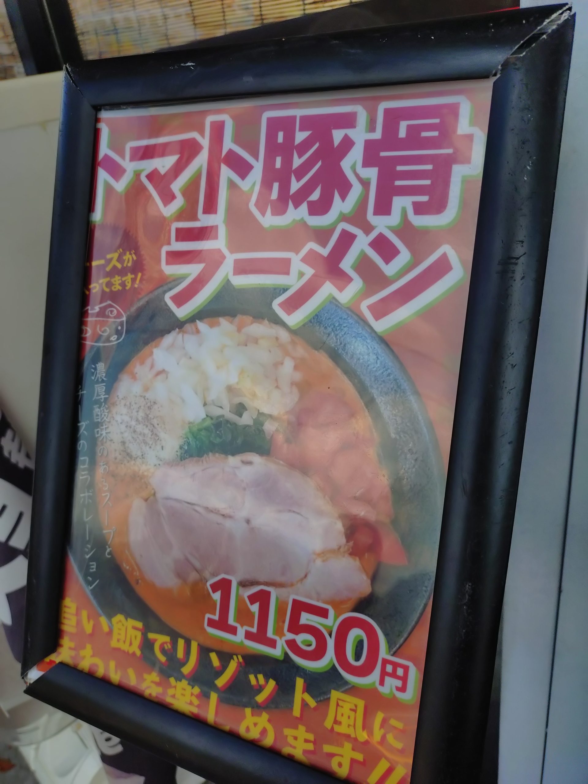 こちらが期間限定トマト豚骨ラーメンの案内